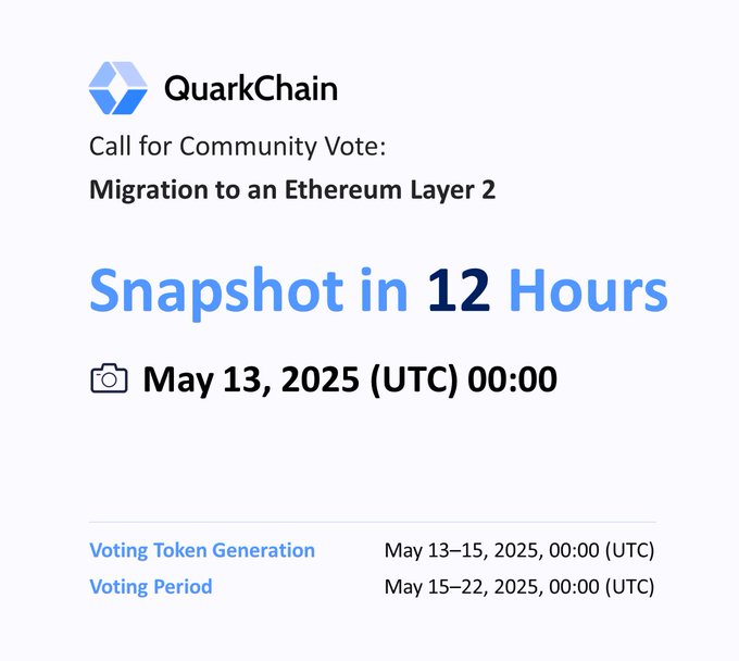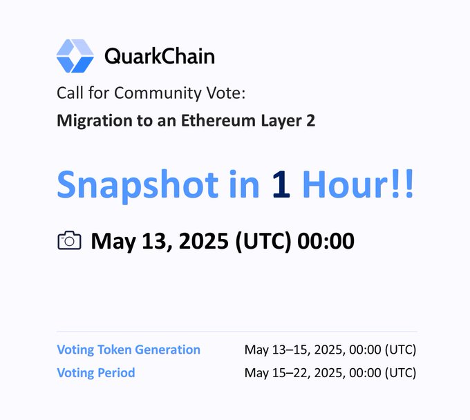 ⚠ Make sure your QKC tokens are in your ETH-compatible wallet (e.g., MetaMask) before the Snapshot starts at 00:00 (UTC), May 13, 2025.