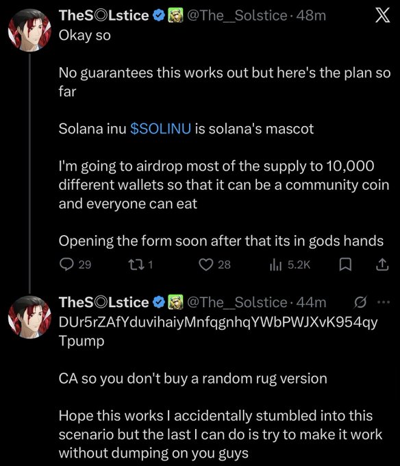 Solstice is the same guy who during the bull market non-stop killed his tokens for subscribers He also regularly sold advertising on explicit larp And now he pretends in his replies that he is “just as degen” as everyone else Very funny twitter.com/100xShaman/status/...
