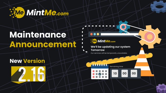 In a few hours, we plan to initiate the update of MintMe to version 2.16. Please be prepared for the downtime. #cryptocurrency #MintMe #blockchain #update