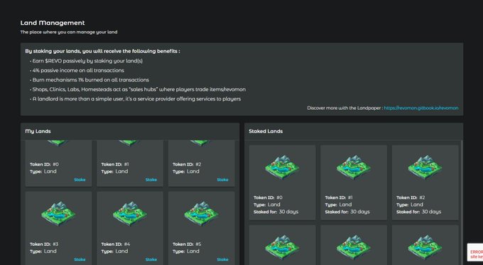 Novus Lands staking feature is close to operational! Landlords will be able to stake their lands to generate passive $REVO revenue: ✦ Staking = Activation ✦ Unstaking = Deactivation ▷ Lands management will be on the Dapp ▷ Land owners get their own dashboard to monitor lands