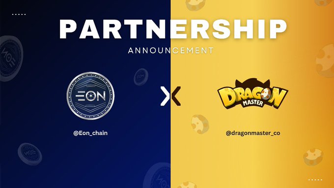 📢 Partnership Announcement 🚀 🌟 EON Chain x DragonMaster 🌟 We’re excited to unveil our strategic partnership with @dragonmaster_co the first blockchain-based Metaverse game combining RTS, MOBA, Collection, and Play-to-Earn mechanics. 🫡 Big things are on the horizon — stay