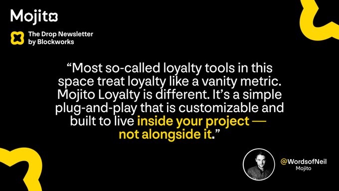 The goal of Mojito Loyalty is to help great teams build programs that actually reflect their community, not just farm engagement. 🗣️ @WordsofNeil, via @pixiekate13 of @Blockworks_ for @thedropnft Read more 👇 thedrop.beehiiv.com/p/9999-cor...