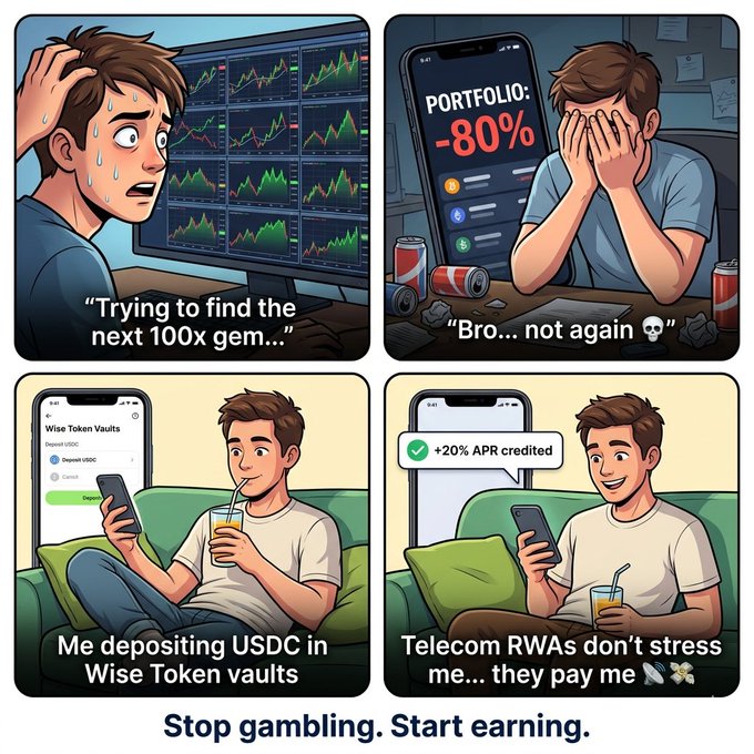 @Wise_Token vault strategies are powered by telecom Real World Assets (RWAs) an industry that doesn’t sleep, doesn’t crash with hype cycles, and stays in demand no matter the market condition. People always need connectivity. That’s where your yield comes from.