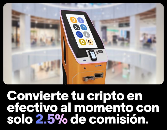💸 Lower commission, more for you. Now selling crypto at our ATMs costs only 2.5% commission. ✅ Collect your money instantly ✅ More than 100 ATMs waiting for you 📍 Find your nearest <#CajeroBitcoin> on our website.