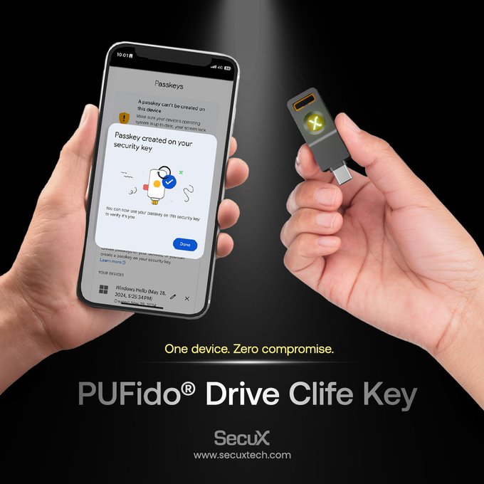 Passwords get hacked every day. Phishing. Data leaks. Credential stuffing. Stop relying on passwords. Hackers can steal passwords but they can’t hack a hardware security key. 🔐 Get PUFido Drive & upgrade your security: secuxtech.com/products/pufido-...… #CyberSecurity #FIDO #Passwordless #SecuX