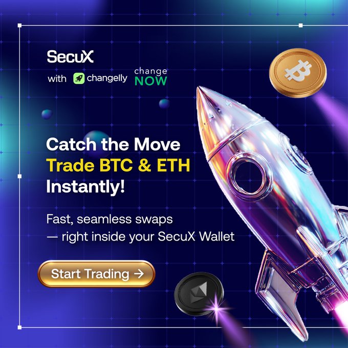 Market moving? Don’t miss it. Trade BTC & ETH instantly from your SecuX hardware wallet — full control, zero custody risk. Fast. Secure. Seamless. 👉 Connect your wallet & trade now 🔗 lihi.cc/LXrwV