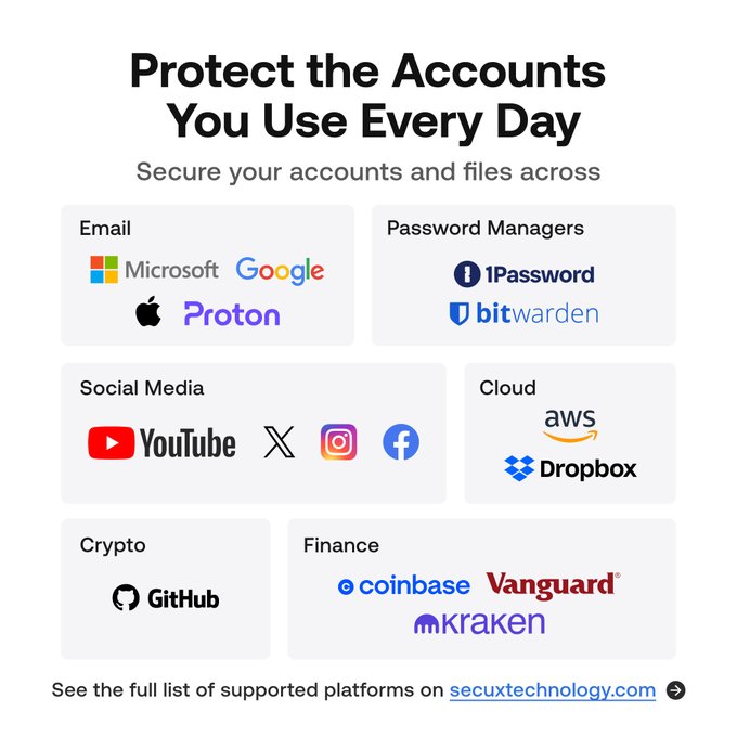 🔐 Protect the accounts you use every day. Google. Apple. YouTube. AWS. Coinbase. And hundreds more. One key. No passwords. No phishing. No stress. 👉🏻 Get PUFido Drive: secuxtech.com/products/pufido-...… #ModernSecurity #FIDO #Passwordless #SecuX