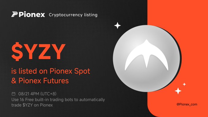 🚀#Pionex has listed $YZY @YZY_MNY Spot trading for $YZY / $USDT and 1–25x USDT-margined perpetual futures are now available. ⬇️Trade now Spot: pionex.com/en/trade/YZYSPOT_US...… Futures: pionex.com/en/futures/YZY.PERP...… @kanyewest #YZY #PIONEX