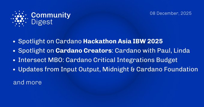 Happy Monday, and welcome to this week’s edition of the Cardano Community Digest. Highlights include: • Cardano Hackathon Asia at IBW with $65K in prizes • Spotlight on: Learn Cardano, Cardano with Paul, Linda • Developer Office Hours on Veridian, and Gero Wallet • Updates from, Intersect MBO, IO, Midnight, and CF …and more ⤵️