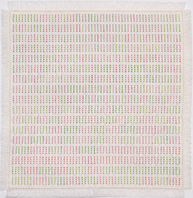 This data sonification is materialized through stitch, illustrating how textiles can store, index, and arrange data in meaningful ways, allowing us to access and recite ephemeral data