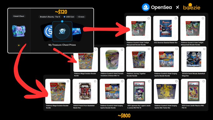 I just turned $120 of OpenSea rewards into $800+ of Beezie claw machine prizes. ๐ค