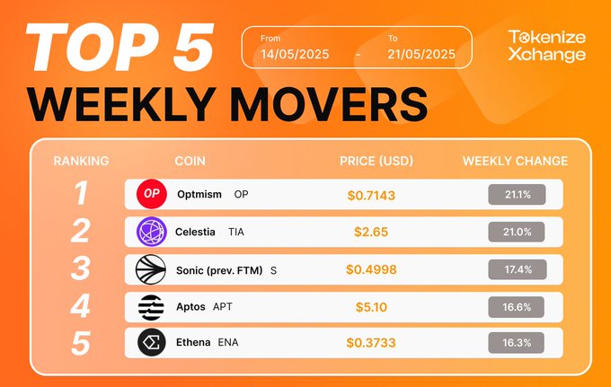 📈 Market movers revealed! Here are this week’s Top 5 cryptos turning heads and building bags. Did your favorite make it? #Tokenizexchange #crypto #trading