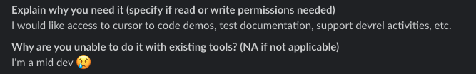 this was my request for Cursor about 6 months ago. I'm still a mid dev