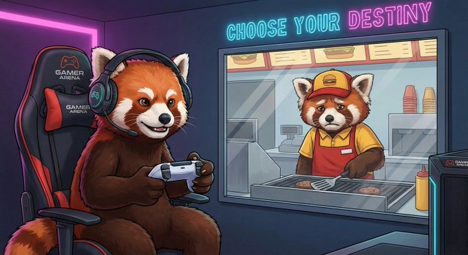 Current $BTC Market Mood: Option A: Panic sell and apply for a shift at a fast-food chain. 🍔🍟 Option B: Sit back, relax, and play games on GAU Arena while we build the future. 🎮🏗️ Choose wisely. Yes, the market is red. But going back to 9-5 is not the answer. Your mental health will thank you. BTC We are not going anywhere. (Except to the moon, eventually.) 🚀
