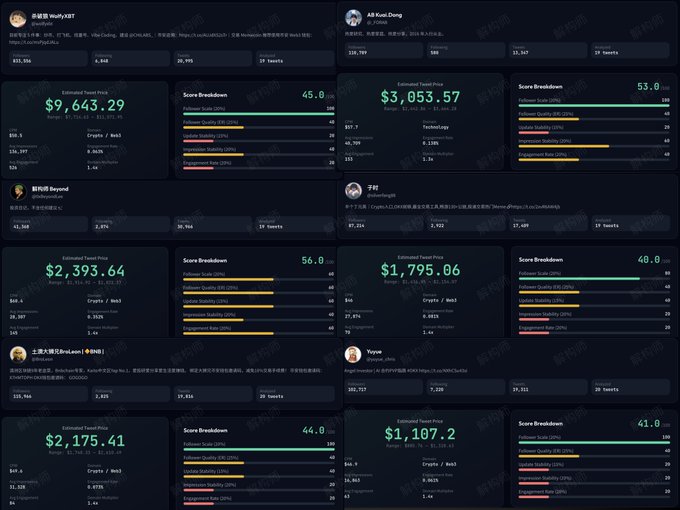 I can earn $2400 from just one tweet... ...Really? 😂 This is the result of JE Labs' newly developed KOL pricing tool. As a top-tier Chinese-language agency, JE Labs holds an unshakeable position in brand marketing and promotion. I glanced at the pricing of my KOL friends, and there are some discrepancies. This indicates a distortion in the current KOL market pricing. With the development of related tools and increased transparency, I believe the market will become more robust in the future. Thanks for the high price; I should be in the top ten in the Chinese-language market? Check out my account's pricing ⬇️ 🔗 KOL Pricer: kolpricer.xyz twitter.com/0xBeyondLee/status...