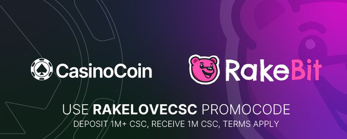 Say hello to one of our newest partners: Rakebit, an emerging crypto casino that supports $CSC! From immersive slots and table games to sports betting - there’s something for everyone. And right now, they’re offering an exclusive CSC bonus: 💥 Deposit 200,000 CSC using code