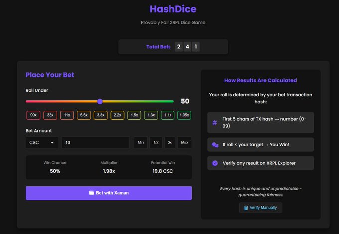 LuckyHash leveled up! You can play Dice and Slots using $CSC! 🔥 Built on XRPL hashes, every spin and roll is provably fair and on-chain. No guesswork, just pure transparency. Check them out and test your luck 👉 http:/luckyhash.win