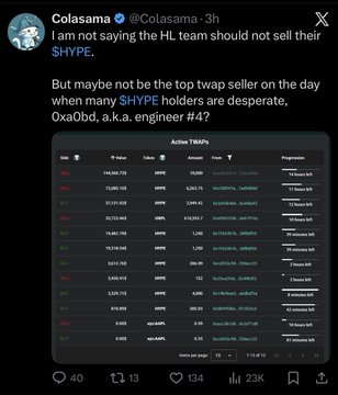 Got so much hate from $HYPE bag holders for this I don’t think they knew that I have owned $HYPE many times and I like the project, it’s just that I refuse to become a bag holder/cult member of any token and I’m always open to changing my opinion based on new info twitter.com/0xSleuth_/status/2...