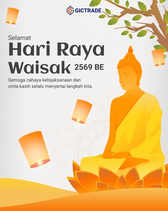 GICTrade wishes a Happy Vesak Day 2569 BE 🌕 May the light of Buddha's wisdom illuminate our hearts and bring peace, love, and happiness in life. 🕊️ Sabbe Satta Bhavantu Sukhitatta (May all living beings be happy) #VesakDay