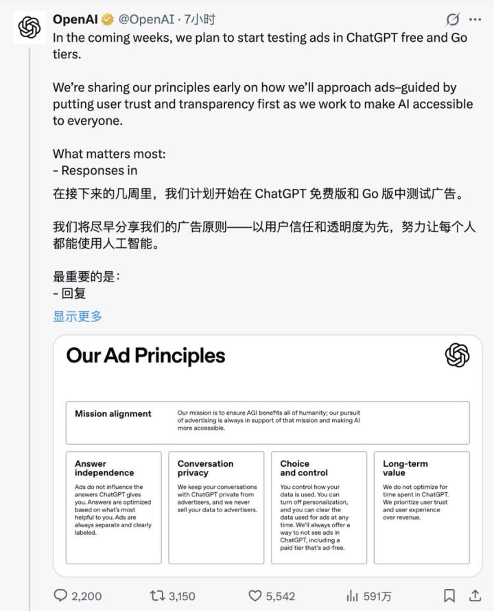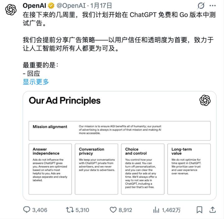 Just now, ChatGPT suddenly announced the addition of advertisements, and even the newly launched $8 subscription plan can't escape them.