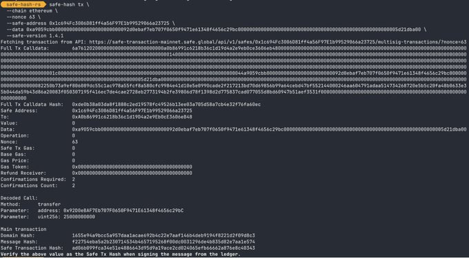 New Rust based CLI tool alert safe-hash Secure your @Safe Wallet transactions by verifying them locally before signing. Originally inspired by @pcaversaccio 👇