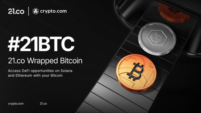 21BTC Information by @cryptocom http:/Crypto.com App users can wrap 21BTC by withdrawing BTC to non-custodial wallets compatible with Ethereum or Solana networks. Note: 21BTC is not an investment product. Details in the official FAQ 🧵