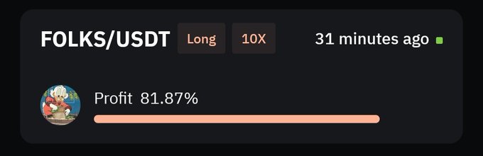 Wow 81% profit on $FOLKS in just 9 minutes with this public trade ๐ฅ๐ฅ๐๐ Follow top social traders signals at SorooshX explore now๐๐ผ http:/sorooshx.com/download
