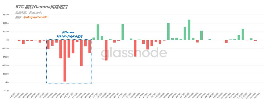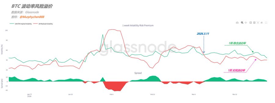 In Glassnode's latest weekly report, their views perfectly align with what I shared in my previous thread “A Balance Game Yet to Erupt” (see quote below). What’s interesting is that we come to the same conclusion from different perspectives: I approached it from the angle of “token distribution,” while the Glassnode team used options derivatives. Here’s the link to the original report: insights.glassnode.com/the-wee...… I know some folks in the Chinese community might find the English in the report a bit tough, so let me break it down: 🚩 Chart 1: Compares 1-week Implied Volatility (IV, green line) vs. 1-week Realized Volatility (RV, red line). Right now, IV is way above RV. This means options are expensive—traders are paying a hefty premium to hedge risk or bet on big moves, but in reality, BTC’s price action this week has been pretty muted. This IV/RV gap has lasted for three weeks now. So, while the market looks calm on the surface, traders are actually anxious underneath. This “paying up for protection” shows a lack of confidence in the current trend. 🚩 Chart 2: Shows Gamma Exposure (GEX); what we care about here are those red bars, which represent the negative gamma zones for market makers. When BTC price drops, market makers in negative gamma territory have to sell more BTC spot or futures to stay delta-neutral. Their hedging can amplify market volatility. Right now, negative gamma is mostly clustered in the $58,000–$66,000 range. Putting these two data points together: The BTC market is in a “fragile equilibrium” right now. With options overpriced and market makers deep in negative gamma, any bearish trigger that pushes price into those sensitive negative gamma zones could set off a powder keg. The suppressed volatility we’ve seen so far could get unleashed much faster—and more violently—than most expect. twitter.com/Murphychen888/stat...