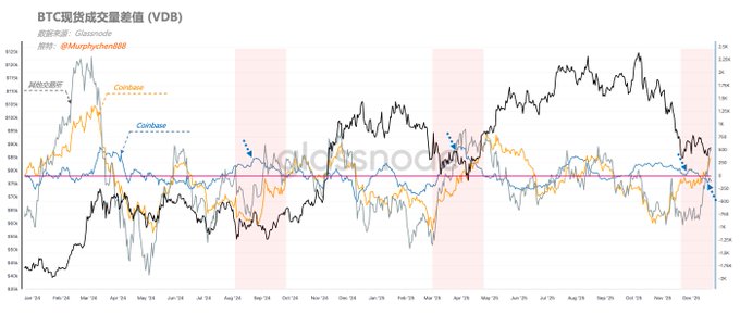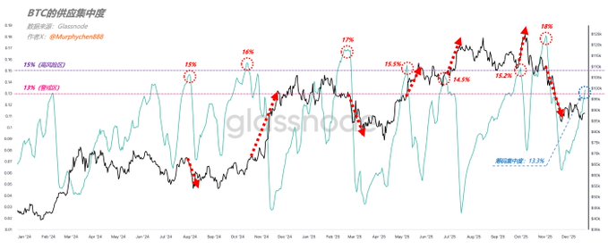 If we take October 11th as the starting point of this cycle’s downturn, the BTC chip structure has changed dramatically over the past two months. Comparing the URPD data from 10/11 and 12/20, it’s easy to spot that the chips in the red shadow zones are decreasing, while there’s significant accumulation in the middle ranges (partly due to Coinbase wallet consolidation).