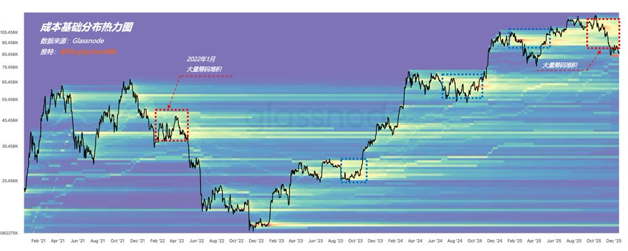 Looking at chip rotation and structure, the panic sellers at the top (cost basis above $110k) are basically exhausted. Unless price nukes further and shakes out another 1.87 million chips in the $80k–$90k range, the focus is now on how much profit-chasing supply below will sell.