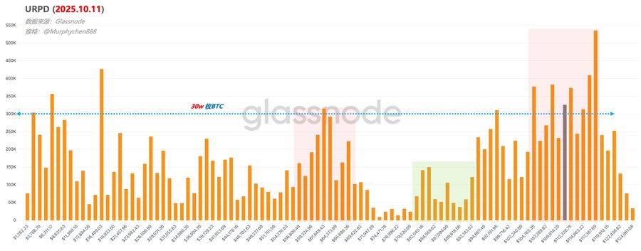 2. At the current BTC price, there are 6.168 million coins in loss above price, and 7.462 million in profit below. Excluding Satoshi’s and lost coins, BTC is almost at a chip structure equilibrium. If you see the two large ranges as a “dual-anchor structure,” BTC is close to the middle.
