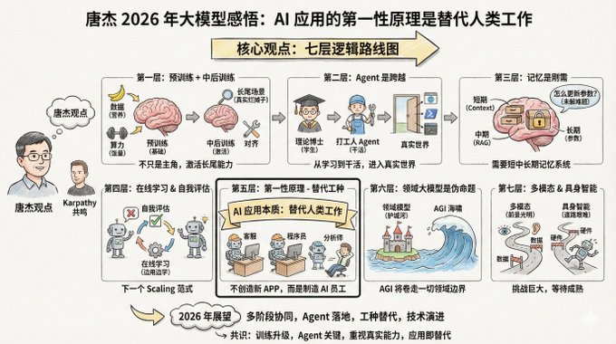 The different focuses are also interesting. Karpathy focuses more on the philosophical question of "what shape is AI intelligence?", while Tang Jie focuses more on the engineering problem of "how to implement the model in real-world scenarios." One leans towards "understanding," the other towards "implementation."