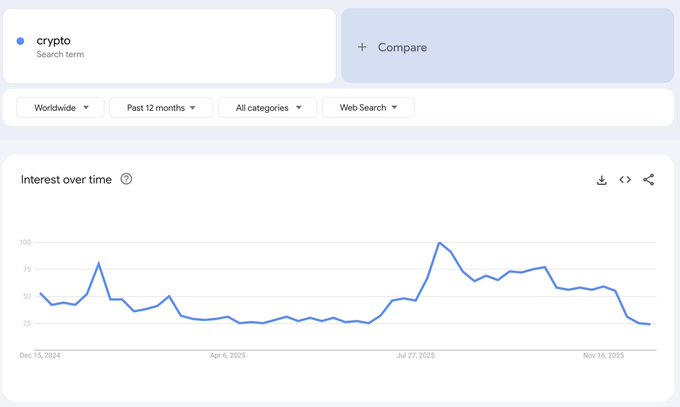 Crypto searches just hit a 12-month low. Peak disbelief.
