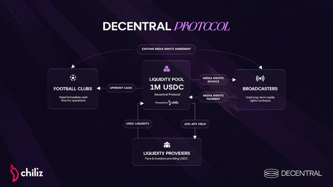SportFi is entering a new phase where tokens are not just collectibles Decentral Protocol has launched a 1M USDC RWA liquidity pool on @Chiliz Chain backed by football media-rights receivables. This brings real world earnings into the hands of fans, not just institutions. Why I am bullish on this: • Real underlying contracts with broadcasters • 12% APY for users who will provide liquidity in the pool • Built on the chain that already hosts 80+ Fan Tokens This is the missing piece that turns SportFi from speculation into real value. You can provide liquidity here: rebrand.ly/decentral-warhol…