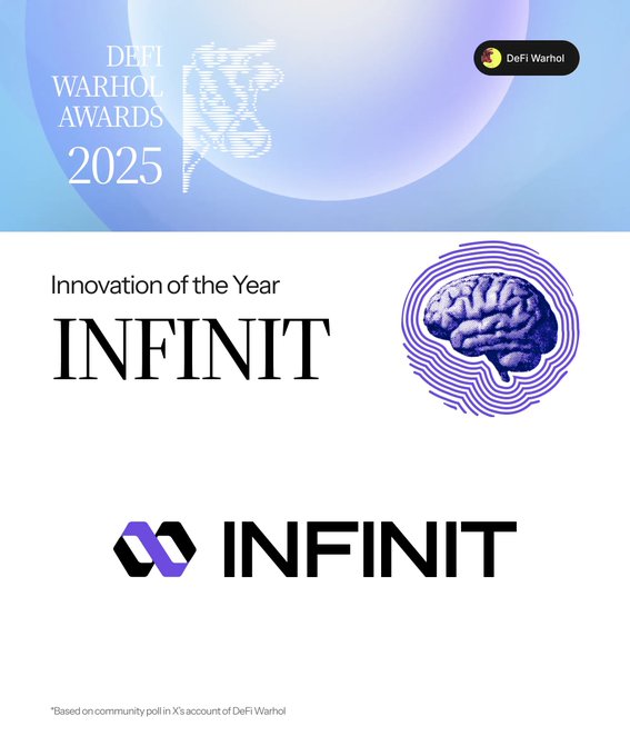 Innovation of the Year Award goes to @Infinit_Labs! Their vision for an agentic DeFi economy and Prompt-to-DeFi is one of the most exciting developments in crypto in 2025. Congratulations! twitter.com/Defi_Warhol/status...