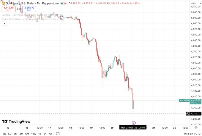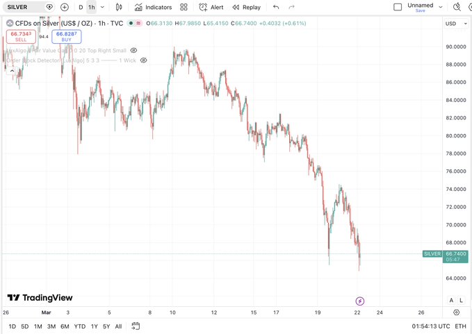 🚨 NOW: Gold just dropped ~5% and Silver is following — a combined $2 trillion wiped from both markets this morning. $BTC market cap is only $1.36 trillion for comparison...