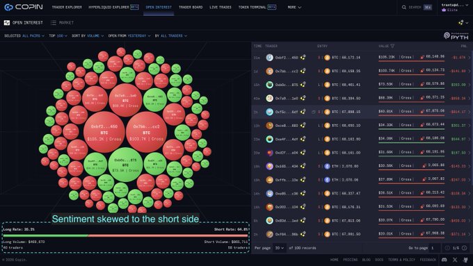 Shorts are dominating @DecibelTrade in the last 24 hours. Among the top 100 positions, 65% of volume is short versus just 35% long. Which side are you on? Place your trade: http:/app.decibel.trade/?ref=4...