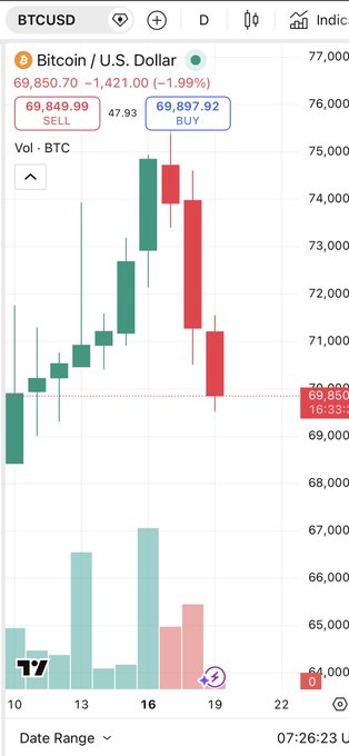 🚨 REKT: $BTC lost its $70K mark. $550M (mostly longs) in perp value was liquidated in the last 24h.