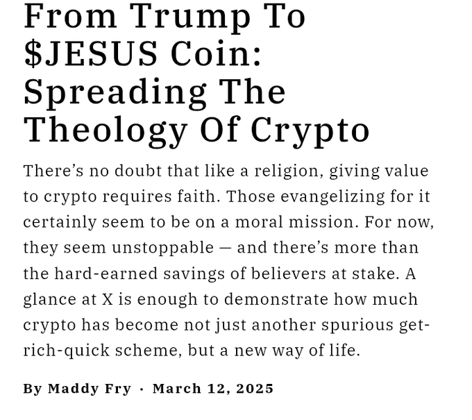 There are 490 million global crypto users (53 million Americans). This number is increasing There are 2.3 Billion Christians worldwide. You think the normies and boomers will go for $JESUS or $randomshitcoinnameINU? Easiest narrative out there. @jesustokens @xCryptoChurch