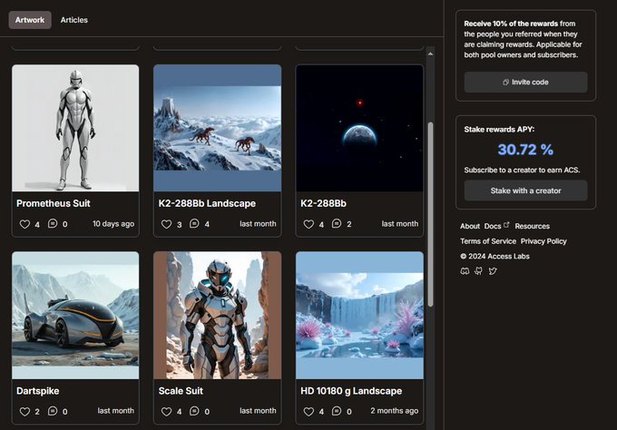As a subscriber of my project "Star Access" on @AccessProtocol - you'll support me as a creator - claim daily ACS coins in around 30% APY rate - receive NFTs related to the project Feel free to explore the platform also for other creators creating and building there.