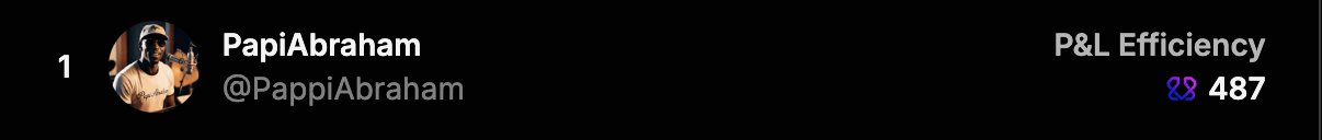 .@PappiAbraham is now #1 in both PNL efficiency and volume for the Arena VDEX trading competition. With $15k in rewards on the line and over 100 traders so far, few realize how difficult this is to achieve. Still 8 days remaining to get your share of rewards 🫡