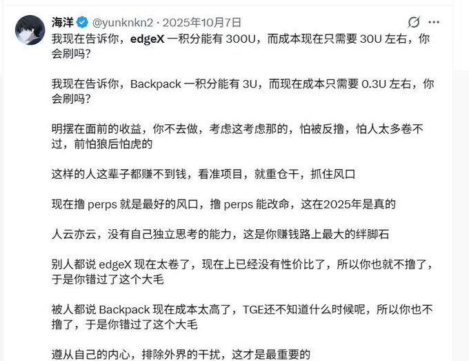 > I'm telling you now, EdgeX charges you 300 USDT for each weight, while the cost is 3000 USDT in fees. Would you still do it? > I'm telling you now, EdgeX only gives you 0.2 coins per point, while the original ratio should be 3.27. Would you still do it? > It's a trap right in front of you; you have to fall for it whether you want to or not. Worrying about weights and so on, afraid of being scammed, afraid of being kicked out of DC—will people like that never make money in their lives? No, people like that are the ones who will keep their money. Only the project team can change fate; this is true in 2026. Everyone says EdgeX is a scam, but you refuse to listen and insist on independent thinking, thus contributing $200 million to the project team. Everyone says the project team is ruthless, but you insist on going all in, thus losing everything on the last day of March. Everyone says the project team is heartless, but you insist on going all in, thus losing everything on the last day of March. Follow your heart, ignore external distractions, and fill the deepest hole—that's the most important thing. 🤡