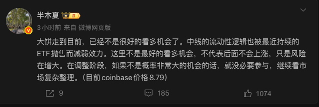 However, it's also important to carefully monitor whether the price breaks below the moving average and enters a consolidation phase. Generally, the market needs to enter a consolidation phase before it has a chance to turn bearish. The probability of a direct shift from a bullish to a bearish trend is the lowest, so even if the market reverses, it will usually experience a period of consolidation first.