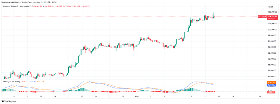Lion’s Share Crypto Market Report May 12, 2025 Market Overview The crypto market remains bullish, with Bitcoin holding above $104K and dominance climbing to 62%. Ethereum and Solana show steady gains, while XRP nears key resistance. ▪️ Total Market Cap: $3.33T (+0.52%) ▪️24h