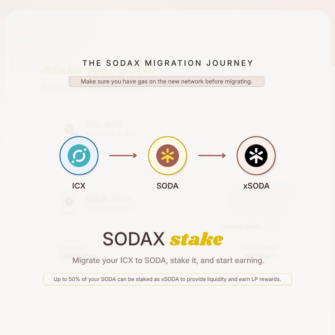 It's your time to migrate to @gosodax, and stake $SODA. • SODAX Stake coming Mar 16 / Rewards Apr 8 • SODAX Pool coming Mar 24 / Rewards Mar 31 Unstake and migrate this month for optimal rewards 🥤