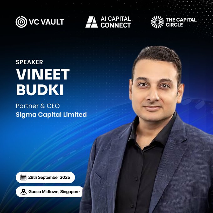 Excited to welcome Vineet Budki @vineetbudki , Partner & CEO at Sigma Capital Limited @Sigma_VC , to the AI & Web3 Investor Meetup, an official #TOKEN2049 side event! โจ Speaker | Future-Proof Investments: AI Trends Every VC Should Know ๐ Get your free pass here: