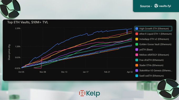 The ETH vault space is crowded. Standing out over six months is hard. Unless your strategy is built for it. High Gain has been the best performing ETH vault over the last 180 days. Blue-chip strategies across @aave, @growcompound and more, powered by @ultrayieldapp & @upshift_fi. Put your ETH to work. Mint hgETH now! ⚓ kerneldao.com/kelp/gain/growth...…