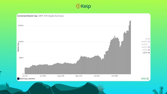 1 week left in Epoch 6 of @arbitrum DRIP and rsETH isn’t slowing down. rsETH’s market cap on Arbitrum is up ~450% since the start of DRIP and is still climbing 🌊 New epoch, new opportunities. Stack extra ARB rewards across supported protocols. ⚓ http:/arbitrumdrip.com/opportu... twitter.com/KelpDAO/status/199...