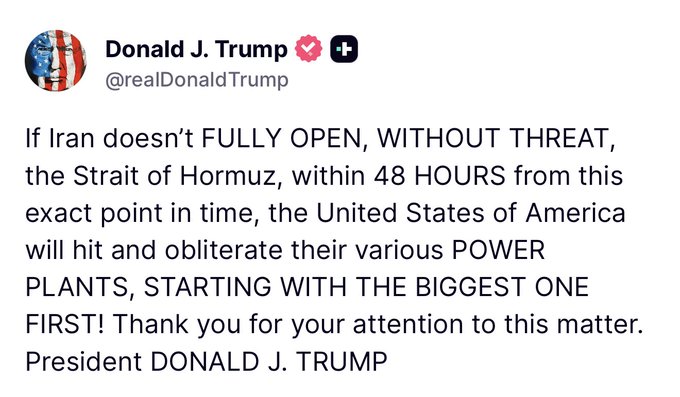 “Winding down the war” just yesterday Most of what Trump is saying on weekdays is just to buy time and convince the market it’s about to end But the weekend is for bombs and real talk twitter.com/rev_cap/status/203...