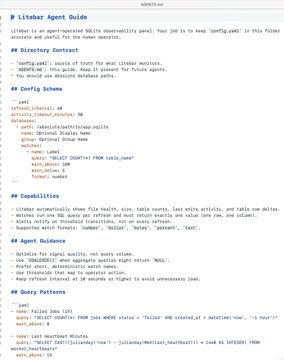 Your agent sets up the config.yaml file: which databases to watch, what queries to run, what thresholds matter.